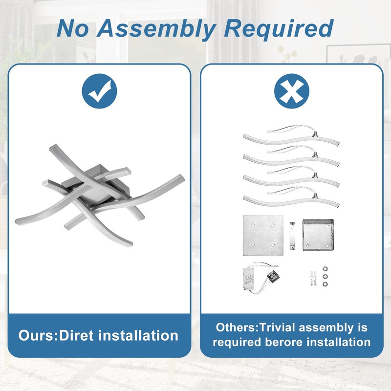 - Unique Curved Shape: This LED ceiling light features 4 curves lamp body shows the minimalist design concept. Eye catching design and clean look is sure to enhance atmosphere while provided enough brightness