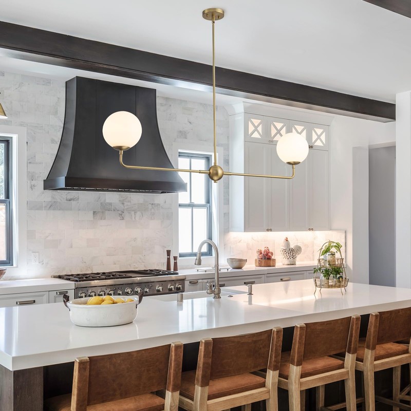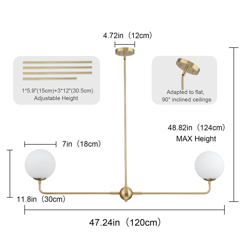 - Premium Quality-- High-quality frosted glass globes are complemented by a brass gold metal frame. The milk globe chandelier is very suitable for dining tables or island, and can add enough lighting and decor to your space