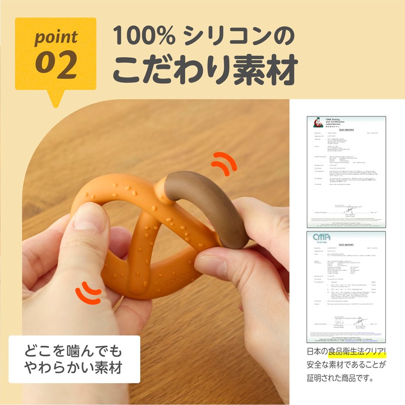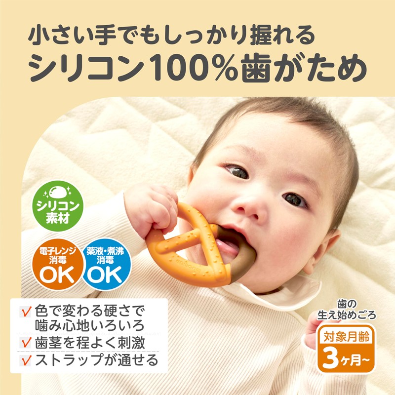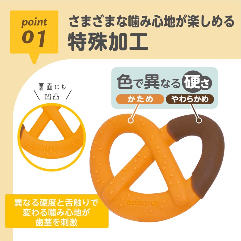 Edison Mama Kamikami Baby Pretzel, 3 Months and Up, Teeth, Different Hardness, Strap Attached, Even Small Hands Can Hold Firmly