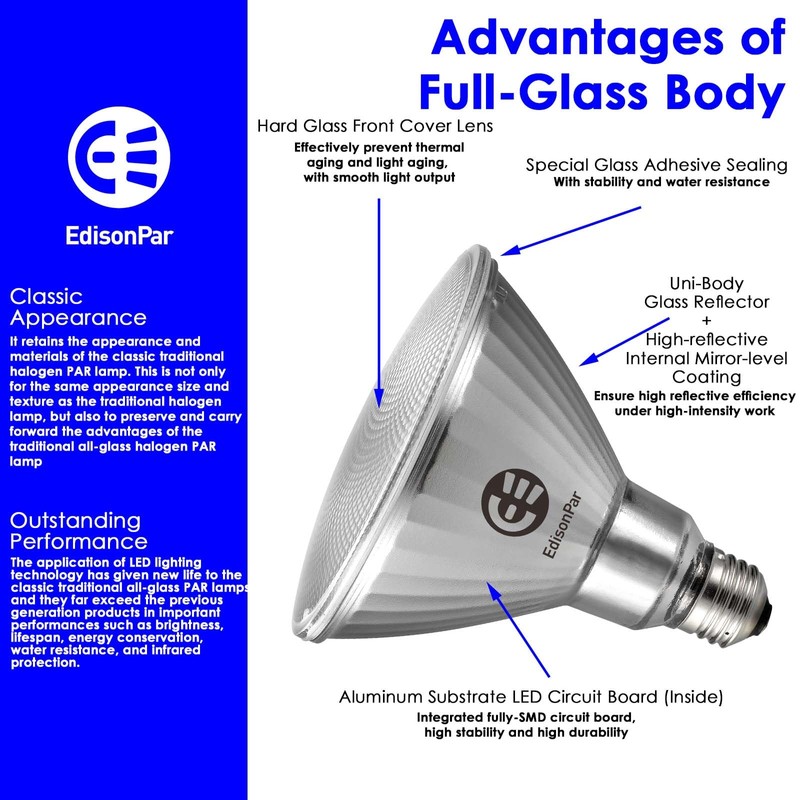 - ✔️✦CLASSIC PAR38 FULL-GLASS BULB TYPE✦ Easy suitable for most E26 Medium Base Ultra Bright Bulb usage scenarios.
