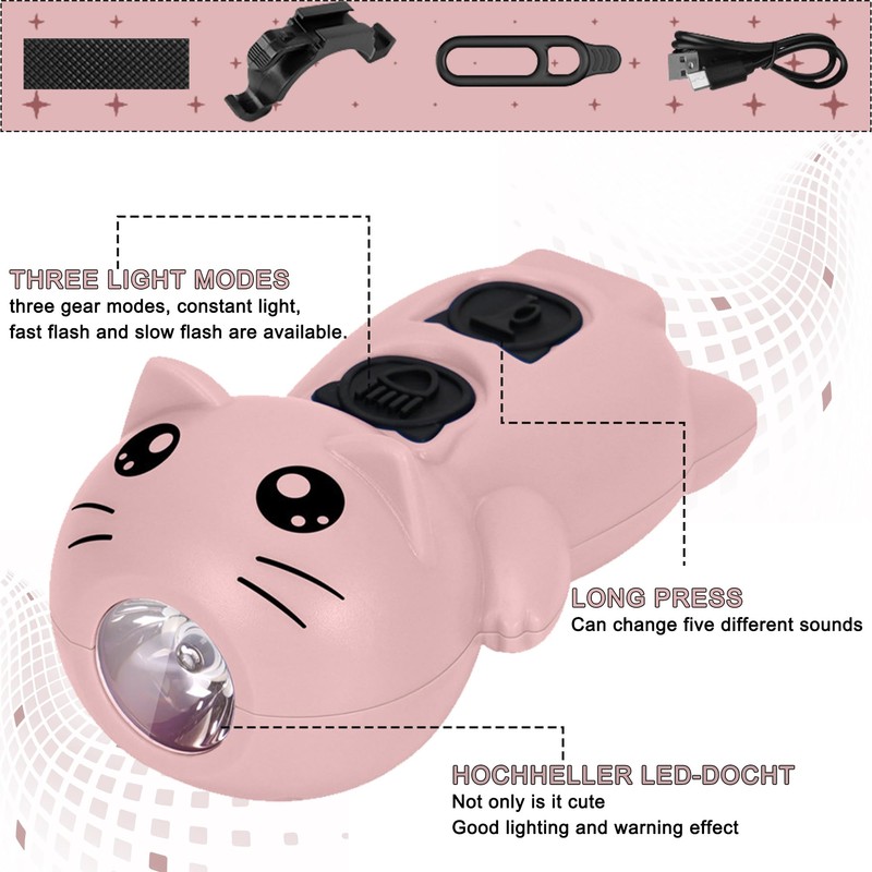 Editbar Children's Scooter Light, LED Children's Scooter Light - USB Rechargeable Pram Light, LED Warning Light, Triple Mode, Horn with Four Modes, IPX4 Waterproof, for Scooter and Pushchair (Pink)