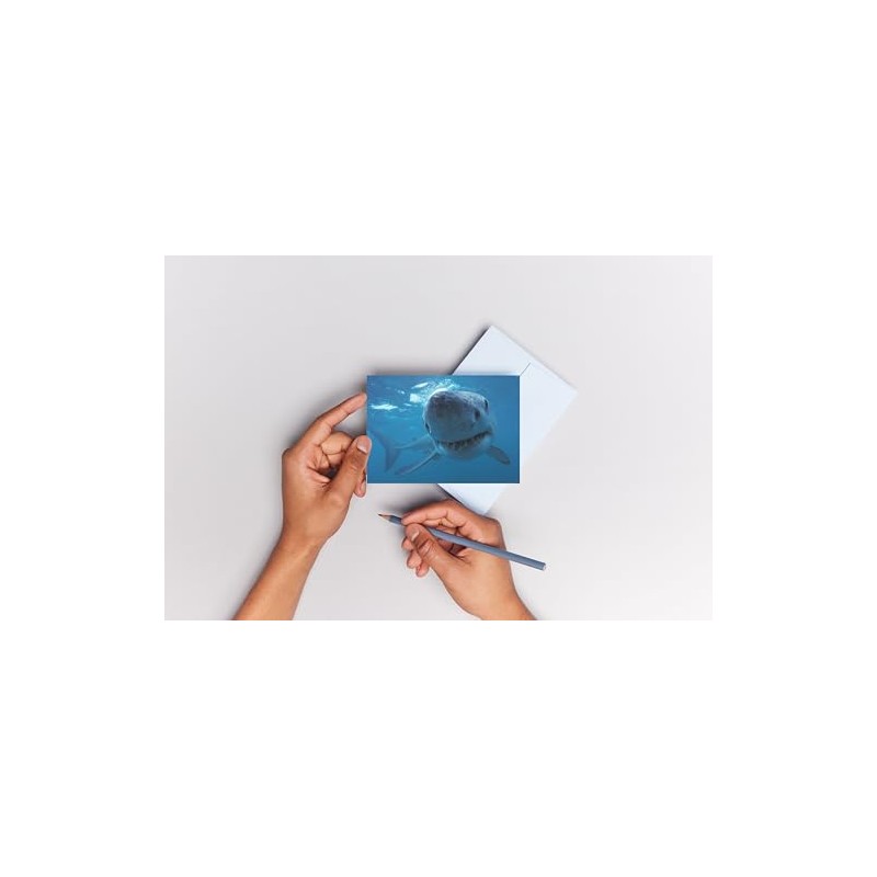 - You will receive a 3D lenticular postcard of a white shark underwater with 3D effect