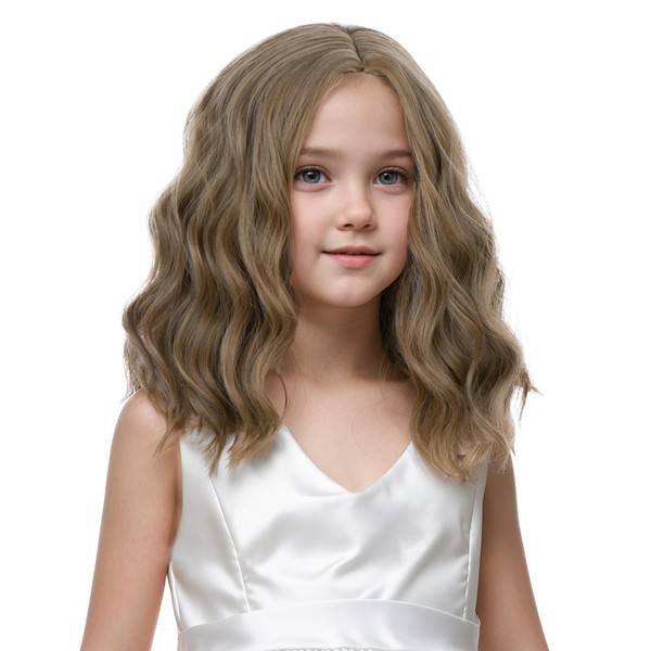 Edivd Kid Ginger Wig Child Light Brown Side Part Wig Brown Wavy Curly Wigs for Girls Heat Resistant Synthetic Wigs with Cap