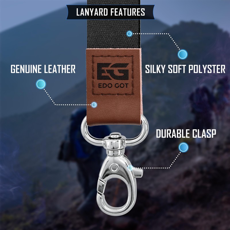 EDO GOT Key Lanyard - Neck Lanyards for ID Badges, Car Keys, Wallet & Phone - Casual & Professional Wear - Black Polyester & Genuine Leather, Metal Lobster Clasp - Wide Strap, 0.75 x 19.7" (50cm)