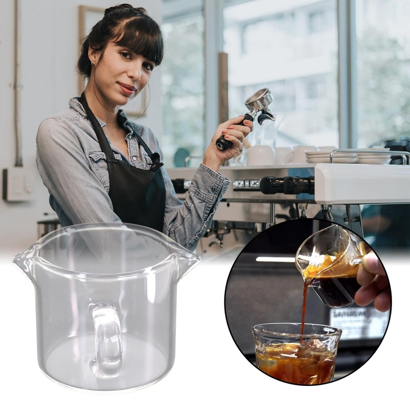 - 4 ounce espresso cup: The 4 ounce capacity allows you to fill two shots of espresso at once. Double nozzles are more convenient and less likely to leak, so glass espresso cups can be poured smoothly without staining the table top, and the sturdy handle keeps fingers away from the heat. It's a good helper for your coffee.