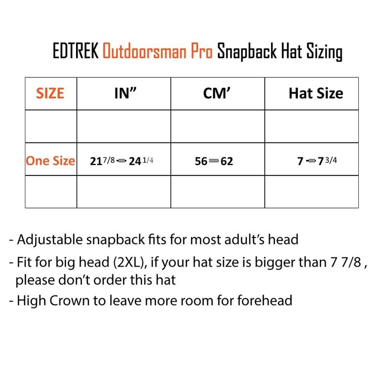 - OUTDOORSMAN PRO HAT - Outdoorsman Pro hat is structured, six-panel, high-profile and flat brim with adjustable snapback. Flat bill is especially preferred by experienced outdoorsman. It keeps sun, drizzle and snow out of your eyes, still keep good visual range. Perfect as Camping hat, fishing hat, hunting hat, work hat, trail hat, baseball hat, all around cap
