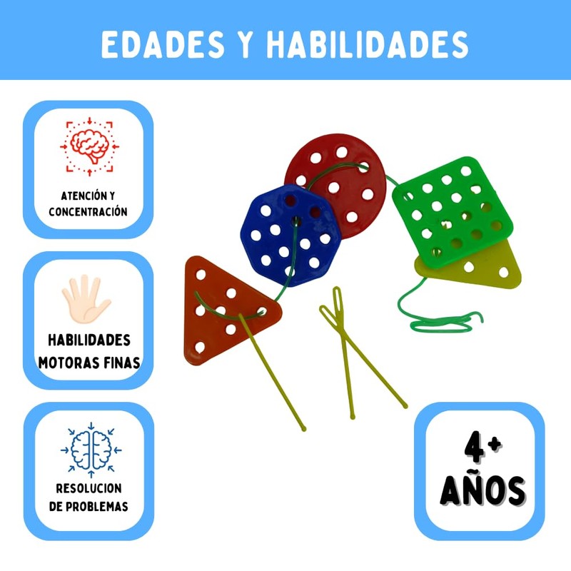 • ¡Despierta la chispa de la creatividad! Las formas perforadas de ensarte son ideales para estimular la imaginación y el ingenio de los niños mientras dan vida a diversas formas y construcciones.