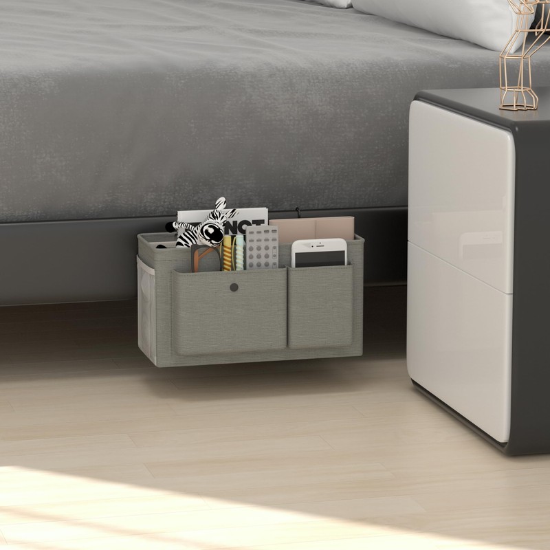 Edudif Bedside Caddy Bedside Organizer with Fixed Straps & Water Bottle Holder, Bunk Bed Caddy ideal for Home, Dorm, Hospital, Crib, Versatile Bedside Storage Solution, Grey