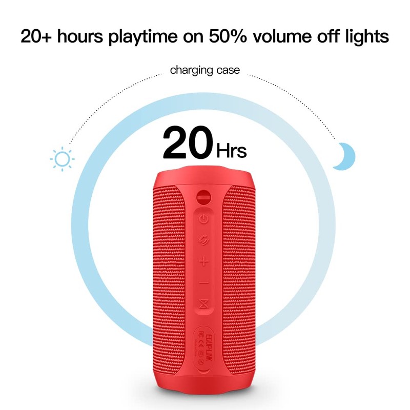 EDUPLINK Waterproof Portable Bluetooth Speaker - 20W Louder Wireless Speaker with 20 Hours Playtime, TWS Pairing, RGB Lights, and TF Slot - Perfect for Beach and Pool, Red