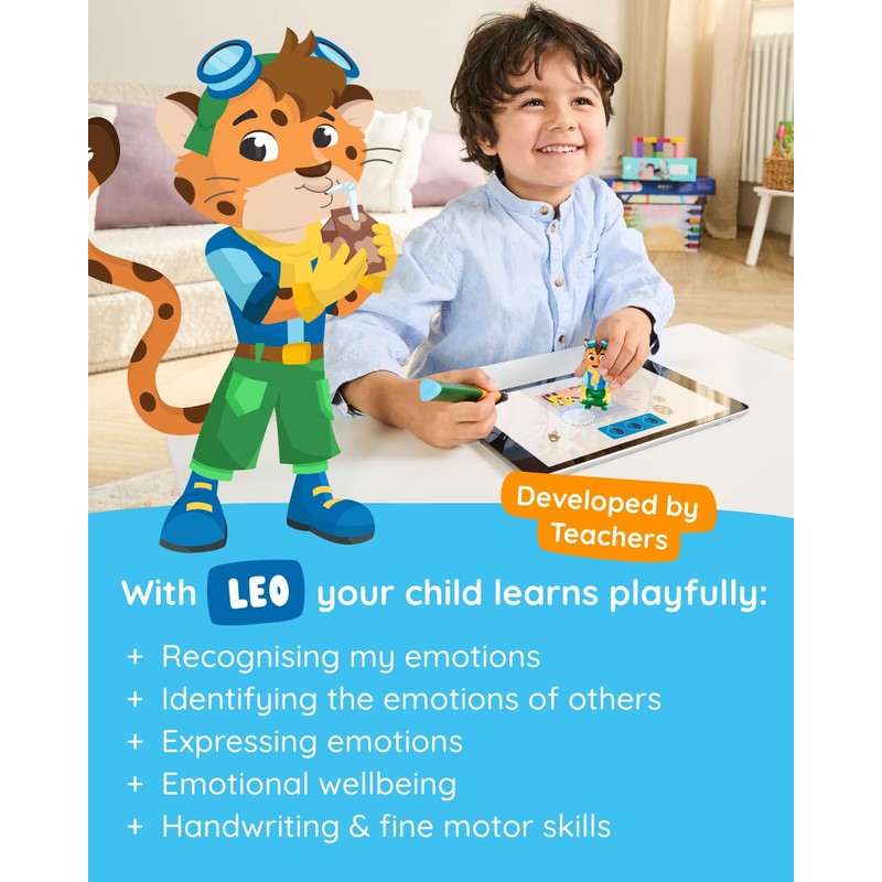 Edurino Leo - My Emotions, Emotions of Others, Emotional Wellbeing - Fun Educational Toy for Kids 4+ - Includes 1 x Leo Figurine and App Access for Engaging Games, Handwriting Practice