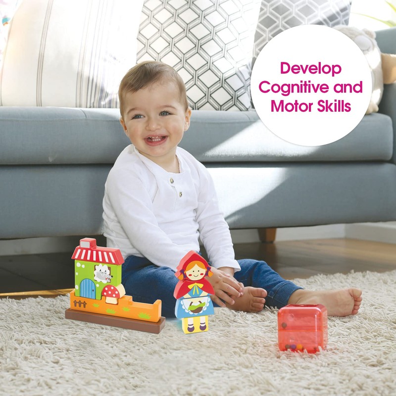 Edushape Red Riding Hood Blocks 3D Wooden Jigsaw Puzzle Game for Kids. Colourful Magnetic Durable Wood Blocks. Educational Gift for Children 2+