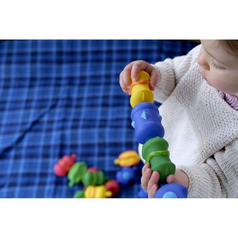 • Lumpy, bumpy surfaces provide an easy, sensory grip for little hands.