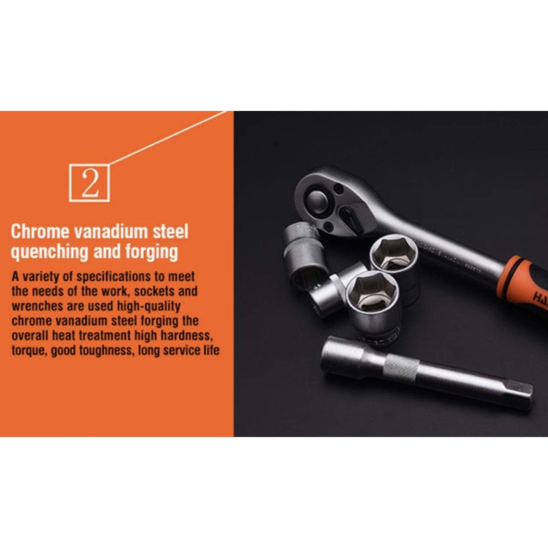 - PRO Grade Socket Wrench Kit made of heavy duty mirror chrome steel