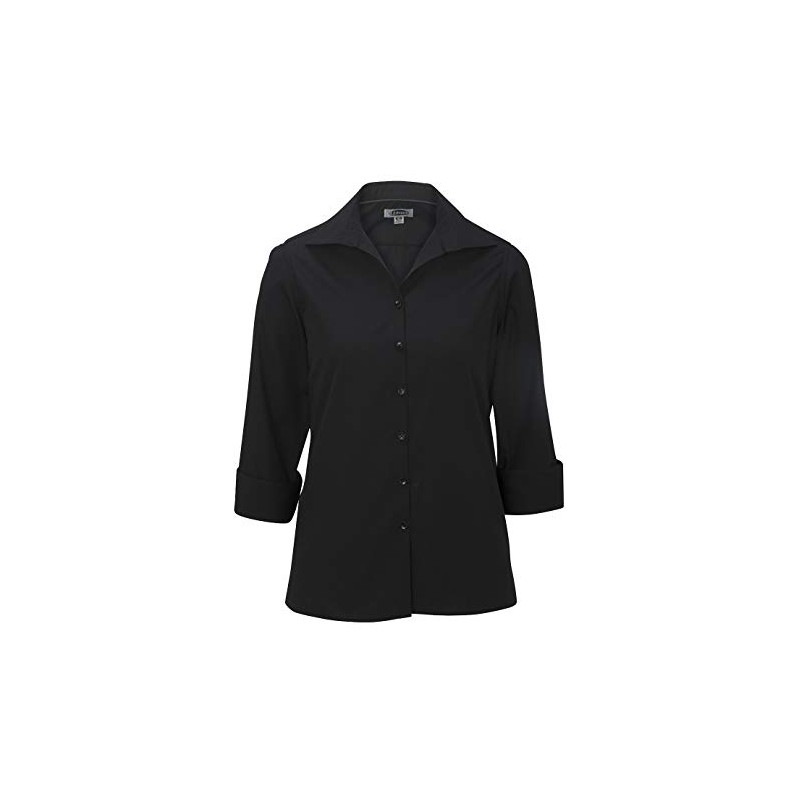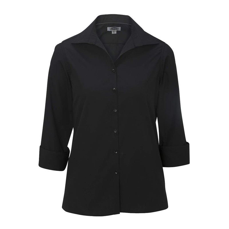 Edwards Ladies' Lightweight Open Neck POPLIN Blouse 3/4 Sleeve Medium Black