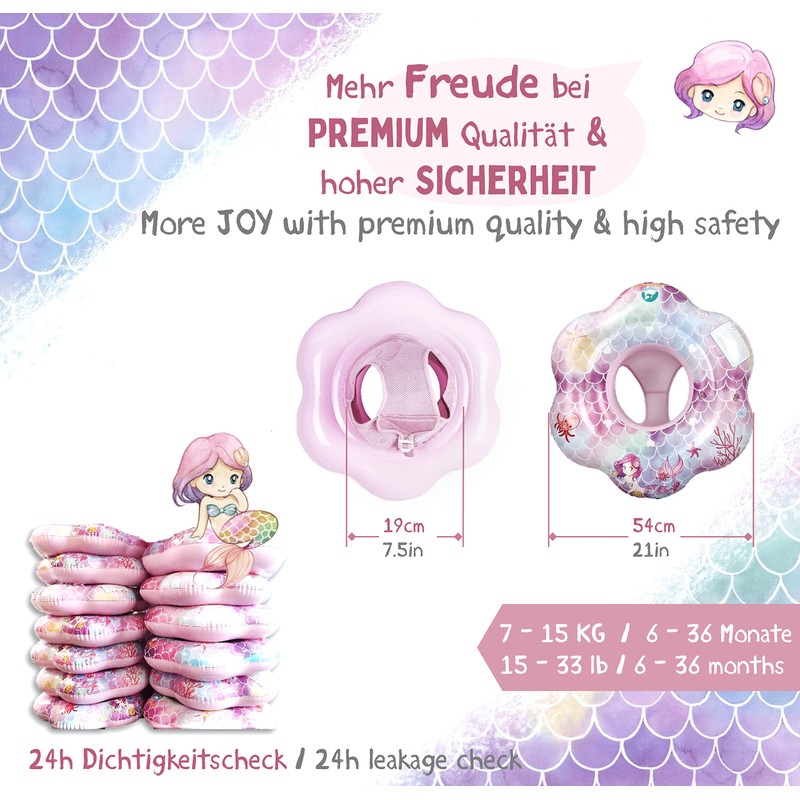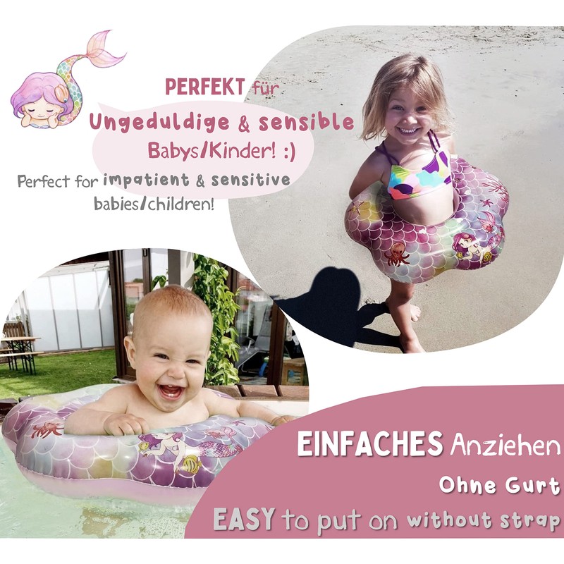EDWEKIN® Baby Swimming Float, Baby Swimming Ring, Inflatable Baby Floats for Swimming, Mermaid Swim Aid that Grows with the Child, for Babies, Toddler, Children from 6 Months to 3 Years