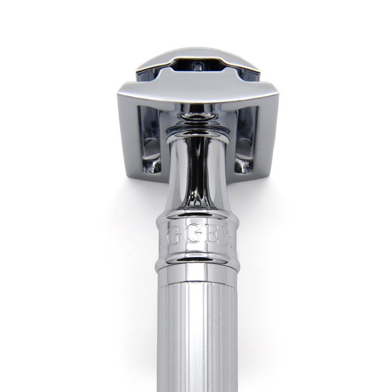 - Lined chrome plated handle for better wet grip and collar branded Edwin Jagger