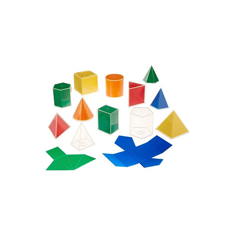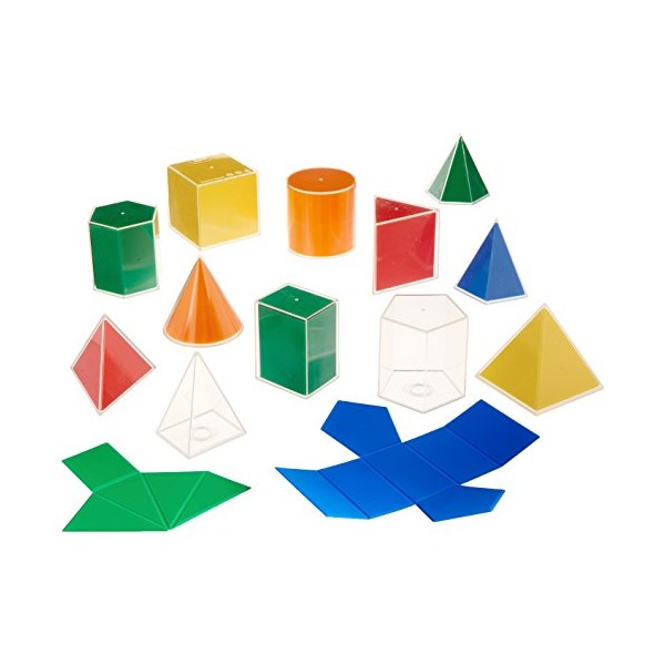 edxeducation 2D3D Geometric Solids - 12 Different Shapes - 5 Colors - Math Supplies for Kids