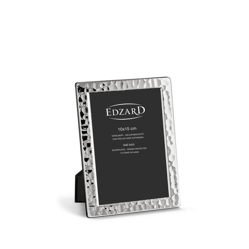EDZARD Pavia Picture Frame for Photo 10 x 15 cm Elegant Silver-Plated Tarnish Resistant with Velvet Backing Includes 2 Hangers Photo Frame for Standing and Hanging