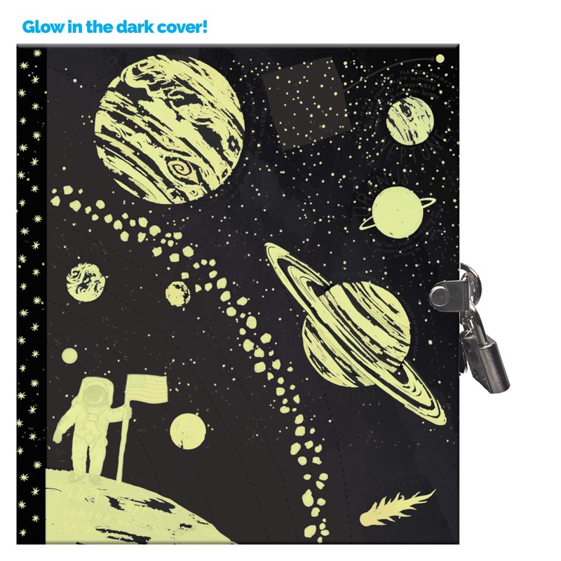 eeBoo Space Adventure Glow in the Dark Hardcover Journal with lock and key
