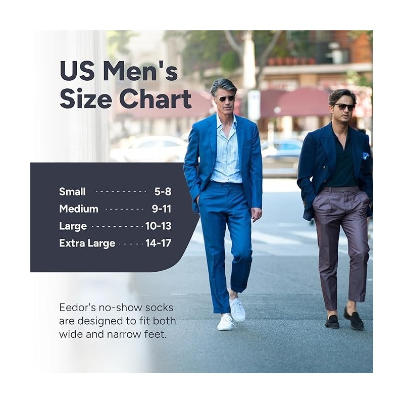 - Durable & Comfortable Fit. Available in multiple sizes: Small for US 5-8, Medium for US 8-11, Large for US 11-14, and Extra Large for US 12-15. These men's low cut running socks offer a wide range of sizes so every man finds his perfect match.
