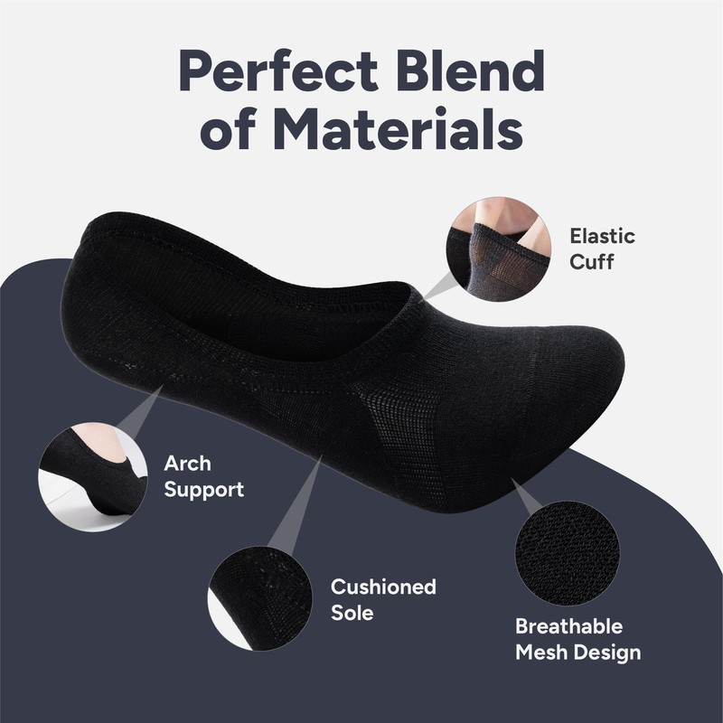 • Moisture Wicking & Breathable Material. Made with 80% Cotton & 20% Spandex for comfort and support, our men's no show socks feature mesh knitting over the low cut socks for enhanced breathability and quick drying, perfect for running or the gym.
