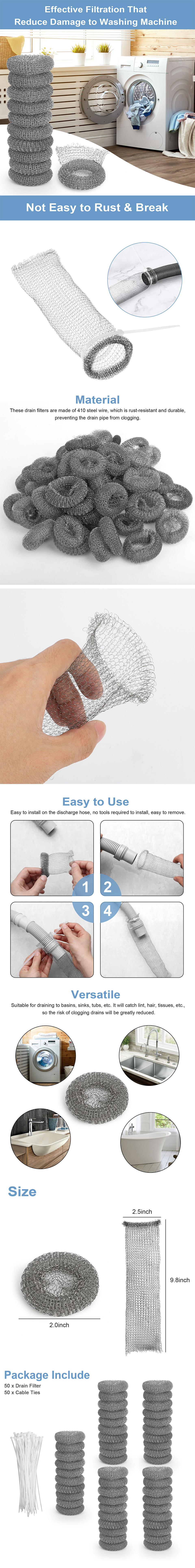 EEEKit 50Pcs Washing Machine Lint Drain Filter Screen Traps Snare Steel Wire Mesh Ties