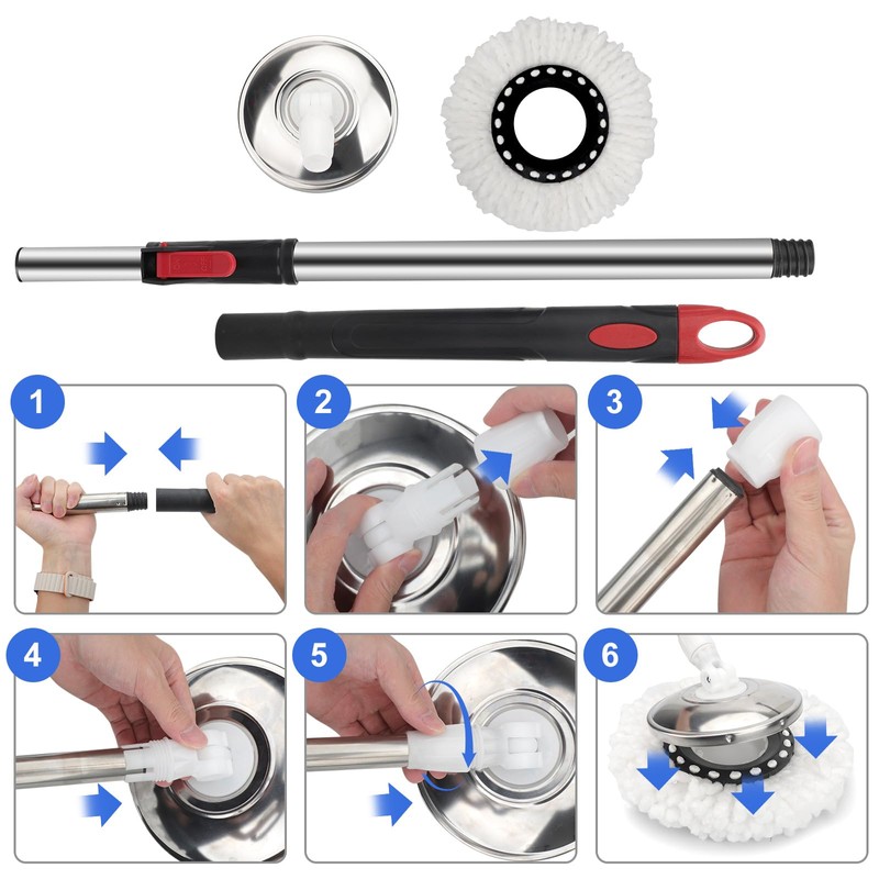 - 360° Rotation: The 360° microfiber rotating mop head can easily reach any hard-to-clean corners