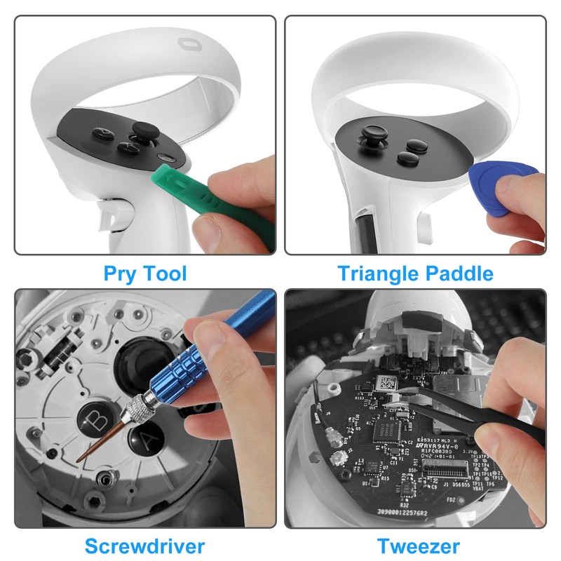 - 10 in 1 Repair Kit: 2 x VR Replacement Joystick, 1 x Screwdriver, 4 x Precision Screwdriver Bits, 1 x Tweezer, 1 x Pry Tool, 1 x Triangle Paddle