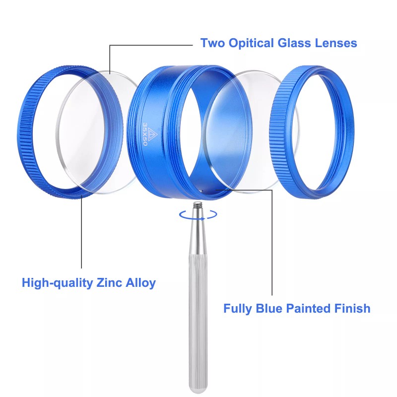 | Product Description This Handheld 35X Magnifying Glass features a round lens perfect for reading, jewelry inspection, and detailed close-up tasks. Compact and easy to use, it’s ideal for home or travel.Product Feature