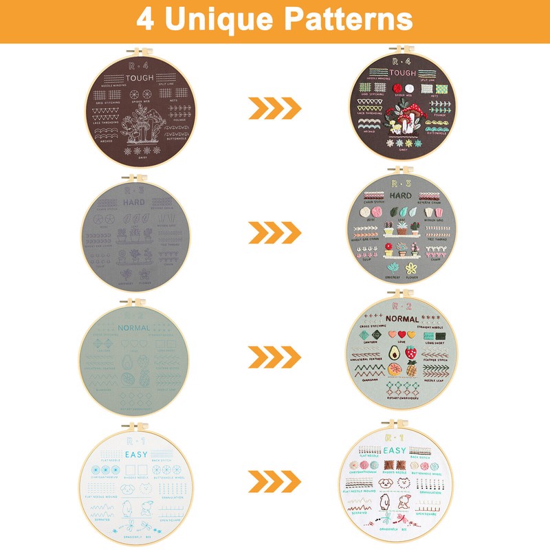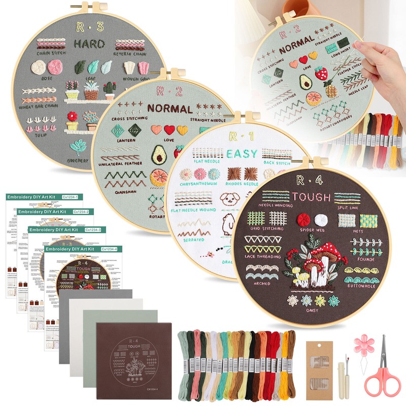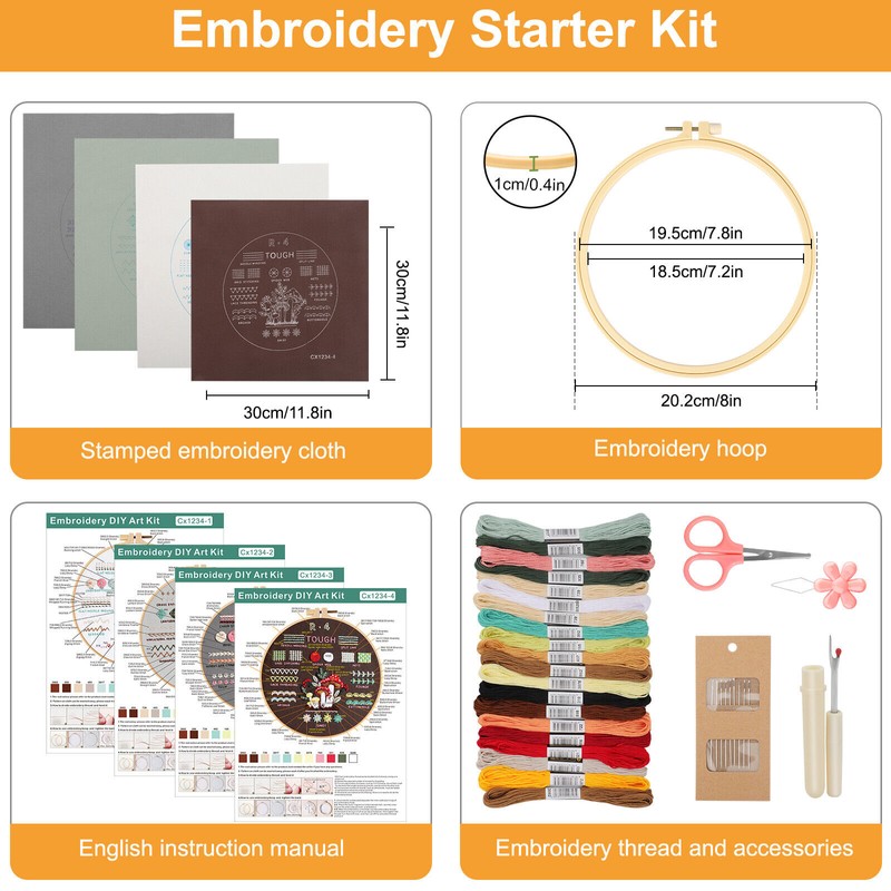 EeeKitOnline 4 Embroidery Starter Set for Beginners Cross Stitch Stamped DIY ...