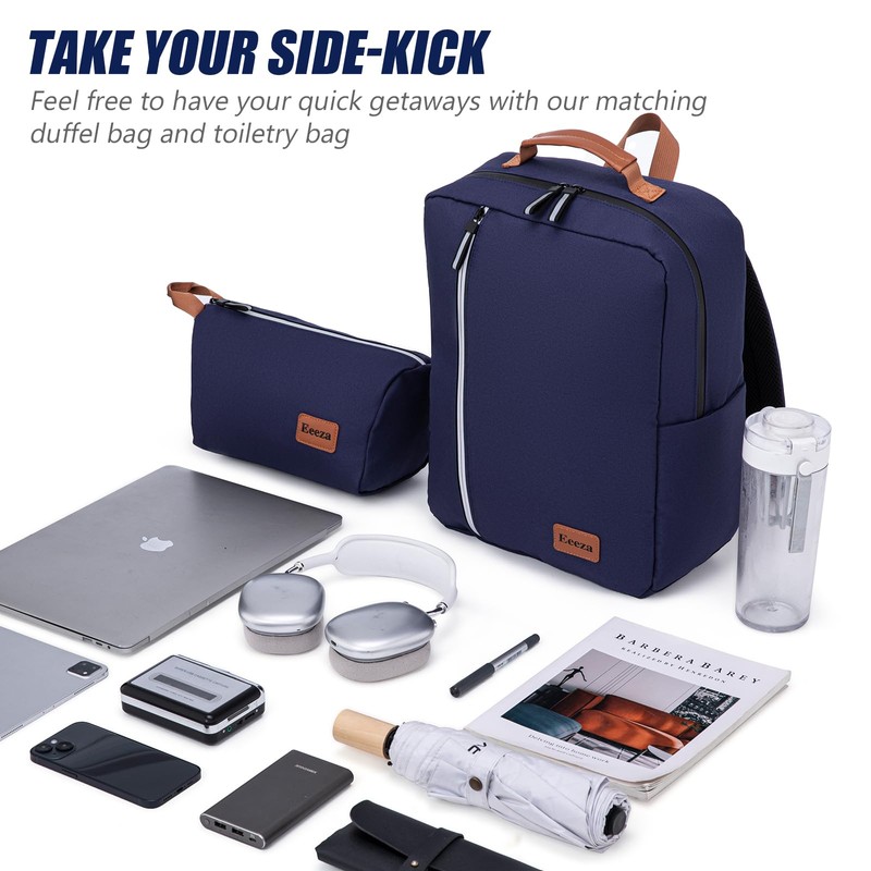 The duffel bag includes a back sleeve to attach securely to the carry-on’s retractable handle—freeing your hands for tickets or luggage tags. Multiple functional pockets organize shoes, gym gear, or souvenirs, while the matching toiletry bag keeps liquids and personal items TSA-compliant.