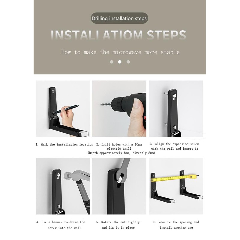 Eeghurt 304 Stainless Steel Sturdy Microwave Shelf Bracket Wall Mount Kit Foldable Stretch Wall Mounted Rack Shelf Oven Stand Shelf Rack 2Piece with Screws, 200X220mm 8X8.5Inch, Black