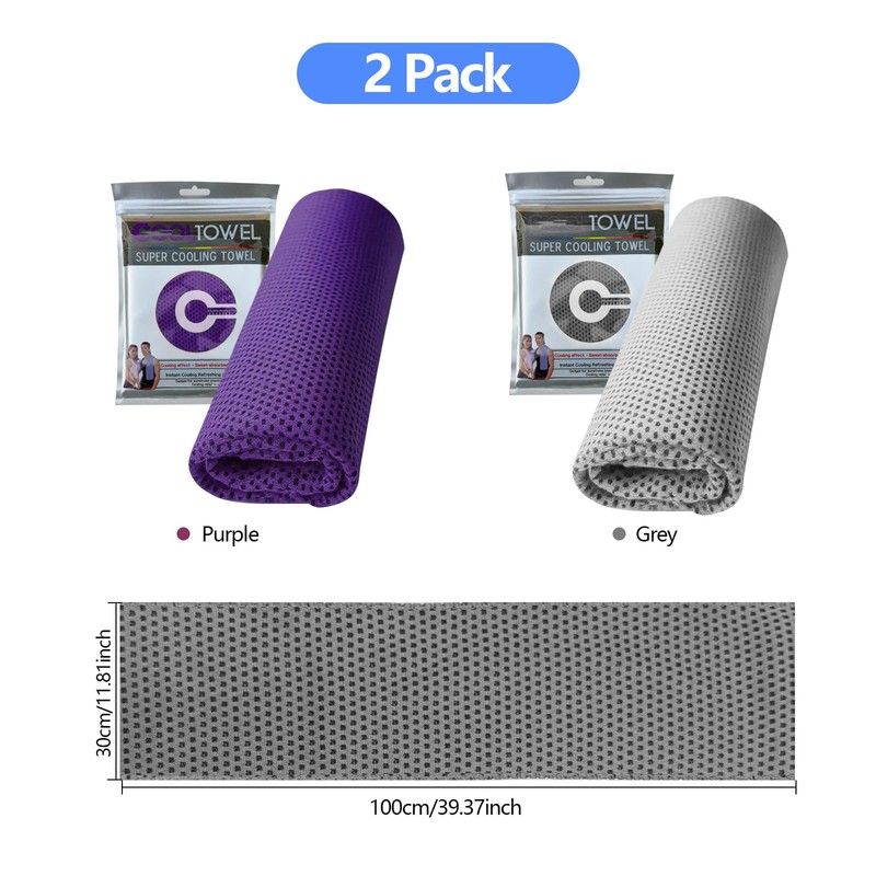 EeGo Cooling Towel, 2 Pack Microfiber Chilly Cooling Towel for Neck and Face, 39.37 x 11.81 Inch