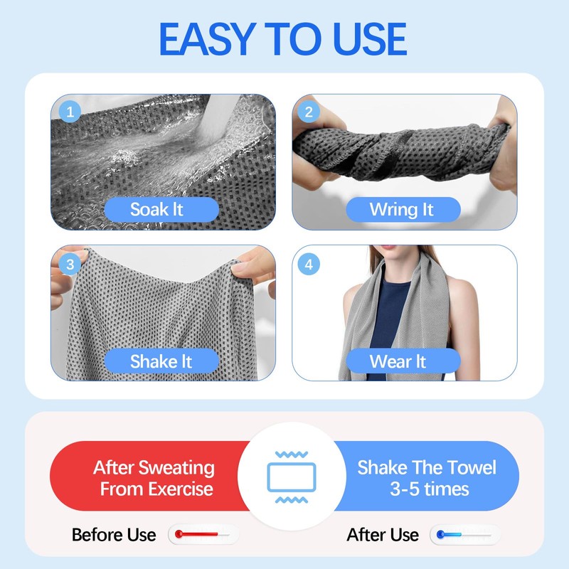- Lightweight - Each towel for instant cooling relief any where. They are easy to store, to carry. A must have gear for athletic men & women.