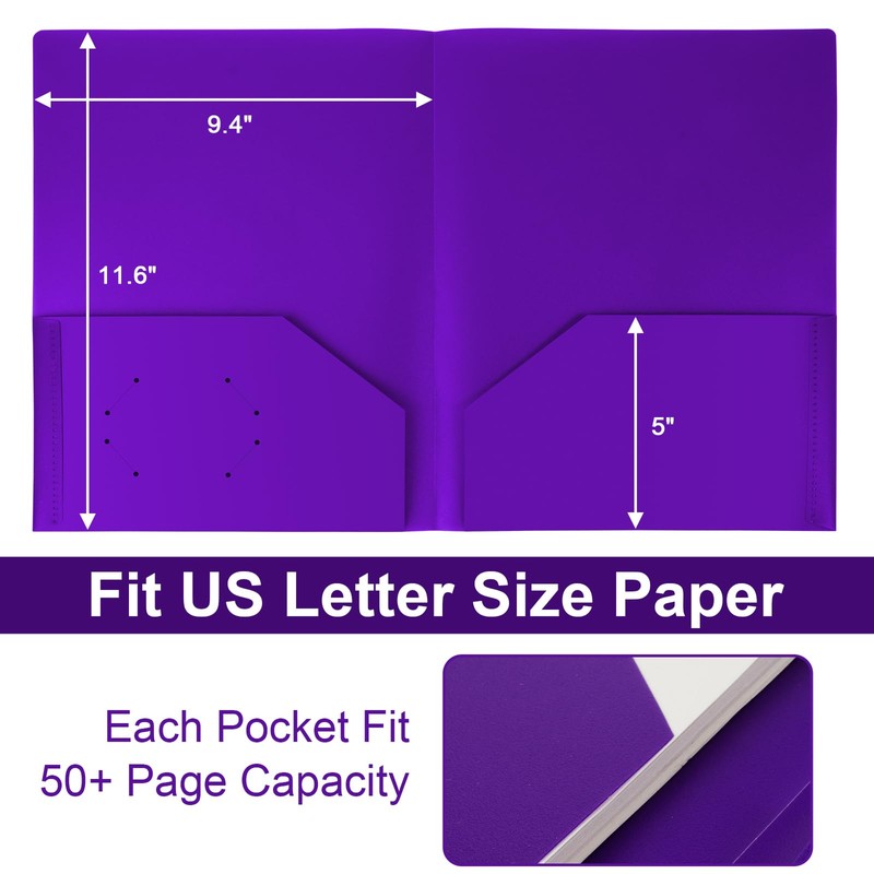 - Heavy duty plastic folders with size 9.4" x 11.6", fit us letter size paper.