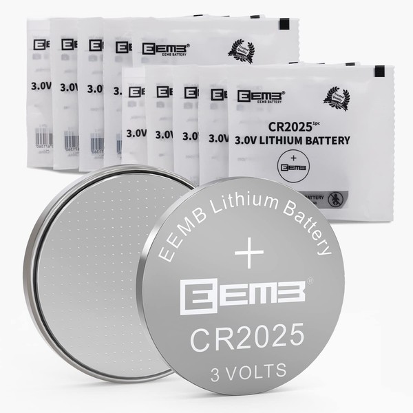 EEMB 10 Pack CR2025 Battery 3V Lithium Battery Button Coin Cell Batteries 2025 Battery for Key FOBs, calculators, Coin counters, Watches, Heart Rate Monitors, Glucose Monitors and More
