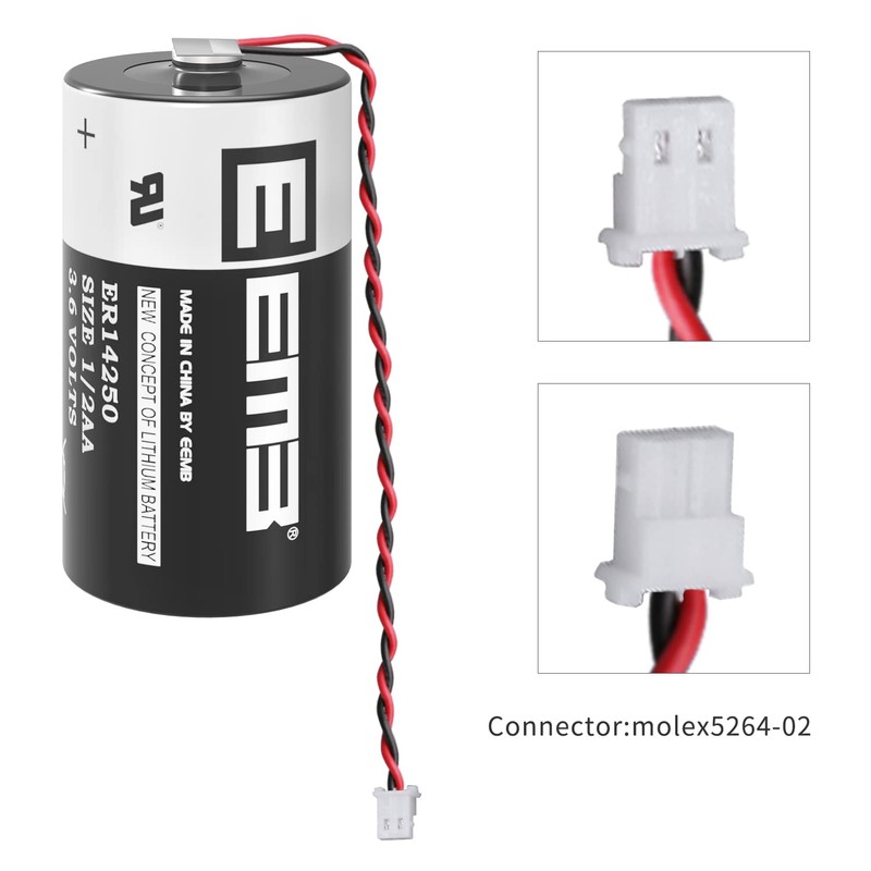 - Información básica: Esta es una batería no recargable. No cargue la batería. Tensión: 3,6 V; Capacidad típica: 1200mah, longitud del cable: 50 mm / 1,97 pulgadas; Conector: Molex 5264 - 02. Debe confirmar antes de comprar: 1. Tamaño de la batería; 2. Modelo de conector; 3. Tamaño del conector; ¡4. Polaridad del conector - Esto no es universal!!! (si la polaridad del conector de la batería no coincide con su dispositivo, puede causar un cortocircuito de la batería.)