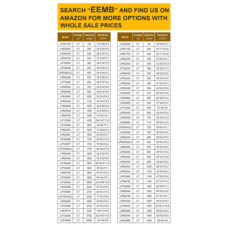 - CERTIFICATIONS—UN 38.3 compliant. More than 400 EEMB batteries are UL certified. Search "MH20555" on UL for all EEMB UL certification information.//MANUFACTURER DIRECT— Please contact us if you have any questions or concerns with the product via Amazon message. We will respond to you within 24 hours.