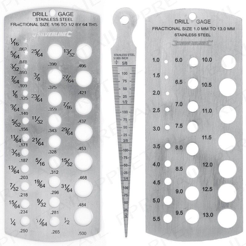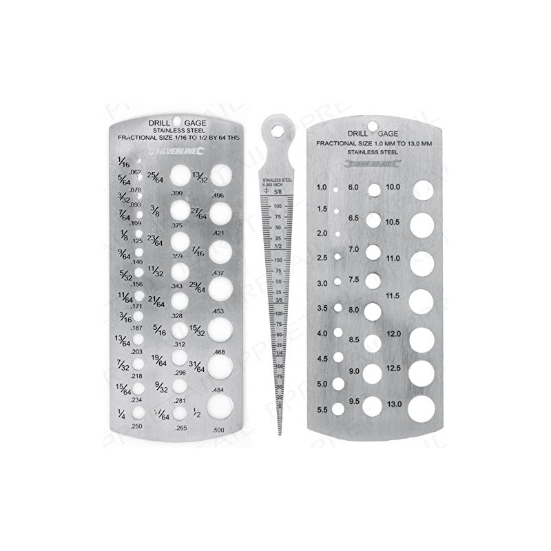 EETools METRIC & IMPERIAL DRILL BIT & TAPERED BORE GAUGE SET Stainless Steel