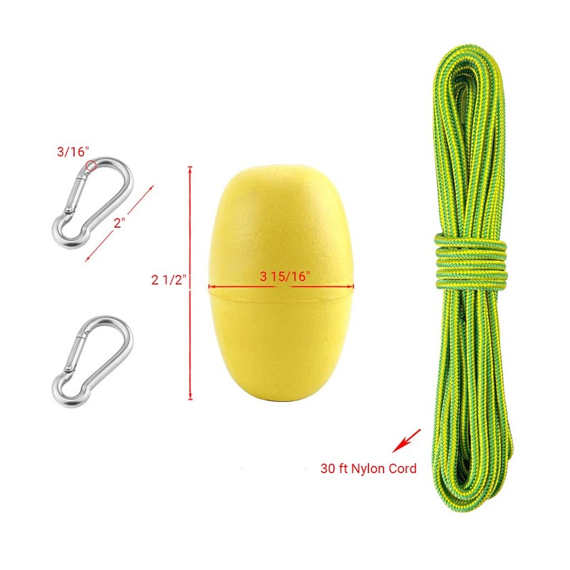 - Bright yellow PVC buoy float (3 15/16" x 2 1/2") ensures easy visibility and retrieval, keeping accessories afloat and preventing loss during kayaking or boating.