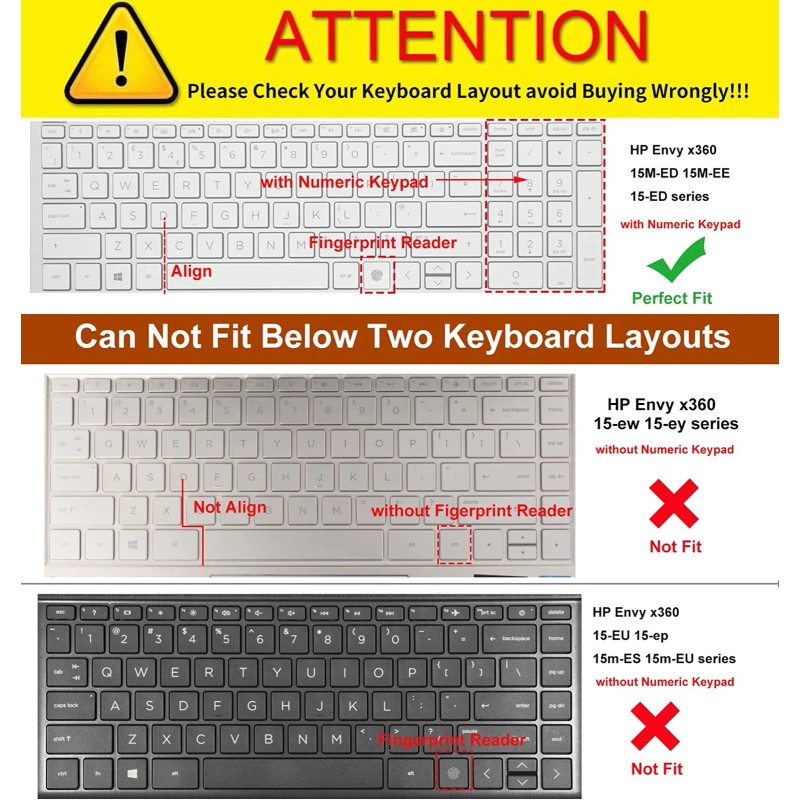 ????NOT COMPATIBLE?Cover DOES NOT Fit HP ENVY x360 2-in-1 15.6" Fingerprint Reader without Numeric Keypad 15m-eu0013dx 15m-eu0023dx 15m-es0013dx 15m-es0023dx 15t-ep000 15-ep0010nr ep0010na ep0010ca ep0123tx ep0004tx ep0142tx & 2022 HP ENVY x360 15.6" Laptop 15z-ey000 15t-ew000 15-ew0023dx 15-ew0797nr 15-ew0013dx 15-ey0013dx 15-ey0023dx without Fingerprint Reader key.