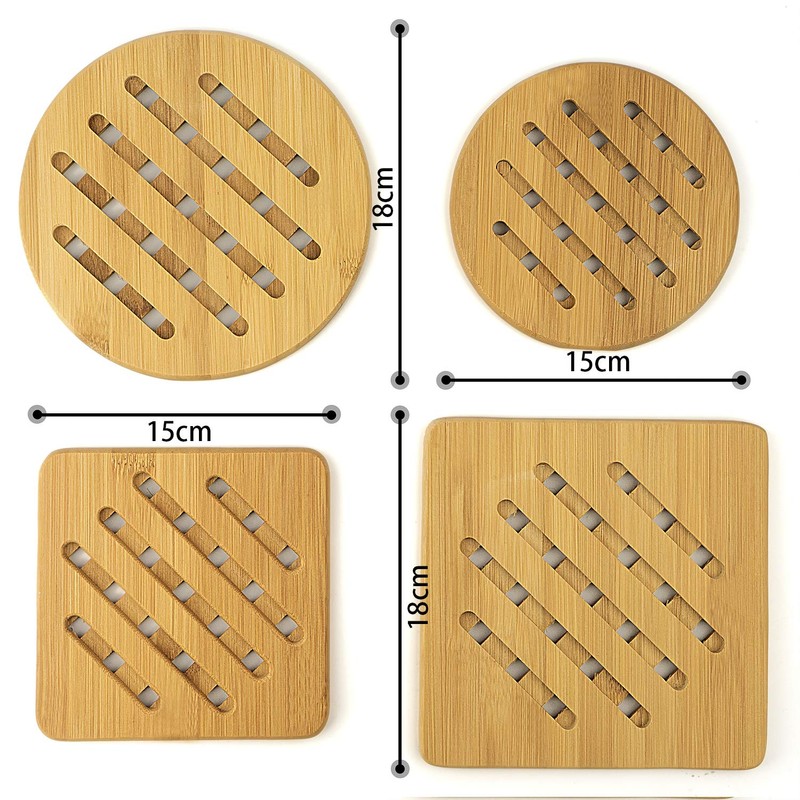 1 Set Bamboo Trivets includes 1 large and 1 small round &1 large and 1 small square