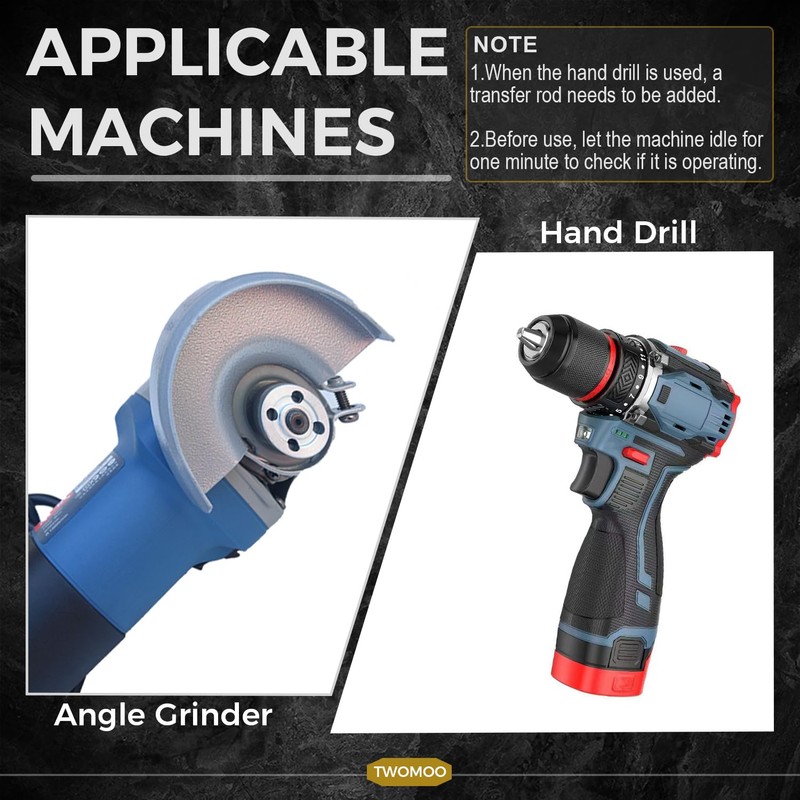 - TIPS--If used on an electric hand drill, a conversion rod needs to be added. Before use, let the machine idle for one minute to check if it is operating normally.