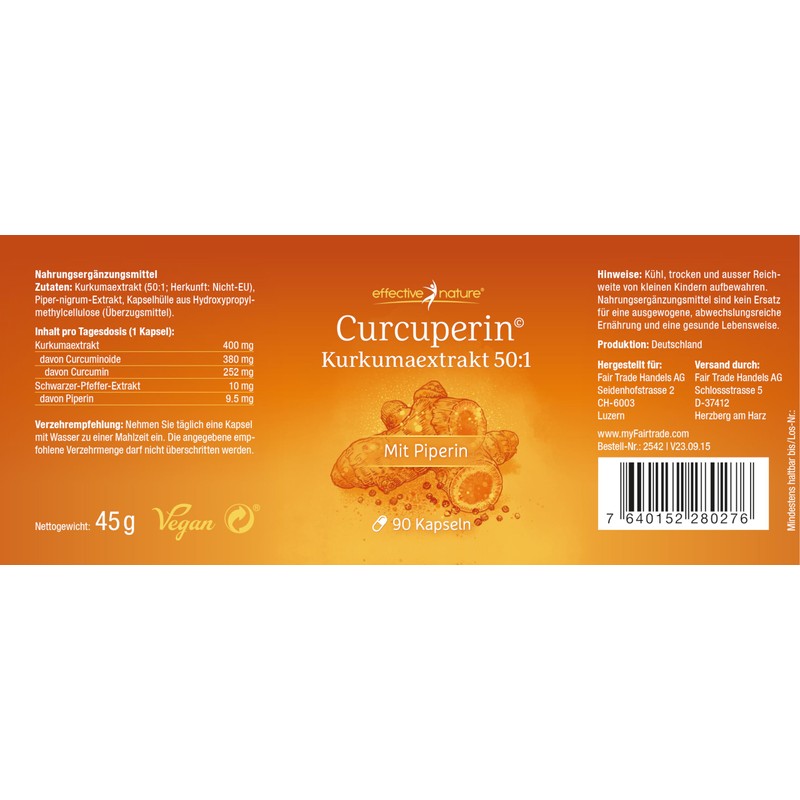 effective nature - Curcuperin - 90 Vegan Capsules - Turmeric and Piperine - Extract 50:1