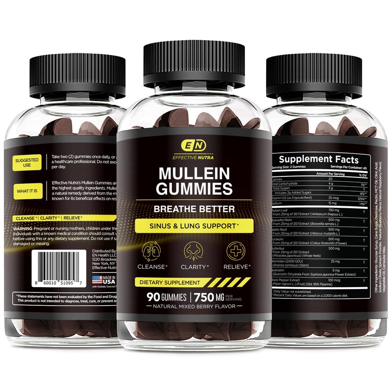 - HEALTHY & DELICIOUS: Yes, we did it! At Effective Nutra we want to provide a healthy and enjoyable experience. Our mullein supplement gummies are naturally berry flavored. With no artificial colors or flavors, you can be sure you’re getting the most nourishing health gummies out there!*