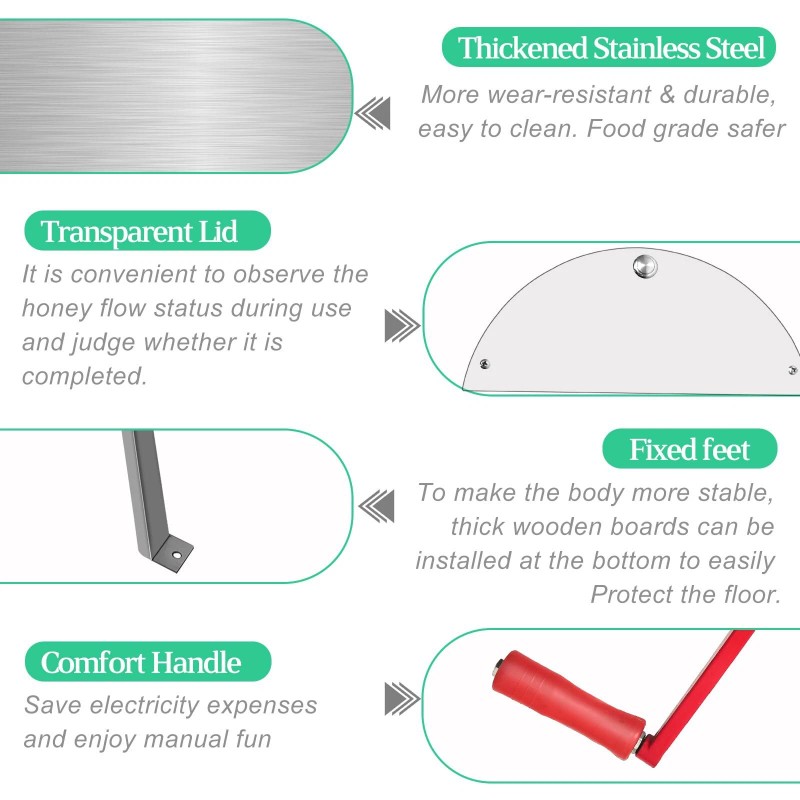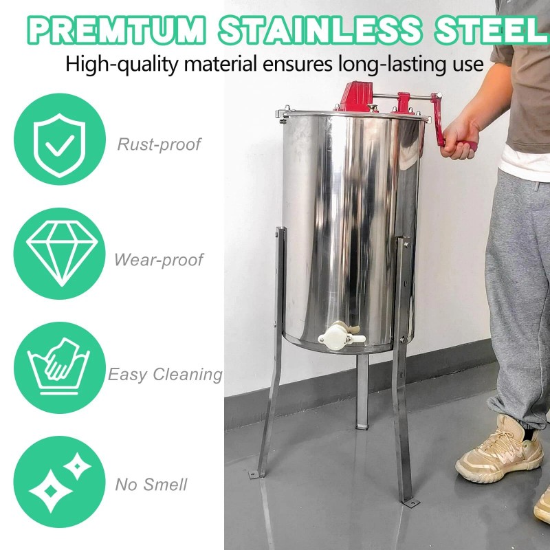 Efficient 3 Frames Manual Honey Extractor for Beekeepers, Stainless Steel
