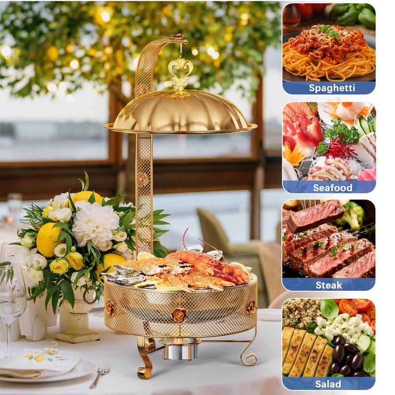 - 【Complete 1-Piece Set with Fuel Holders】Includes 1 gold food warmers, fuel holders—everything needed for professional buffet service. Saves over 30 minutes of setup time, so you can focus on creating memorable guest experiences.