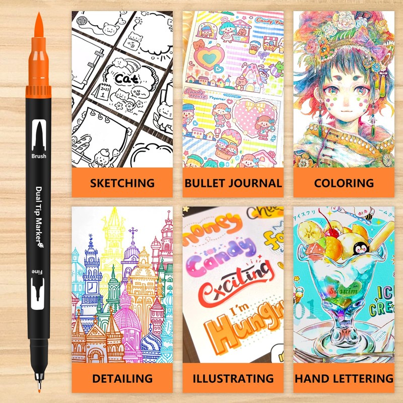 - 🌟3.Quality and Safe Materials - Colouring pens are acid-free, non-toxic and odourless, allowing easy layering and blending of different colours without the worry of smudges and spots. These dual nib brushes are a must have for your next masterpiece.