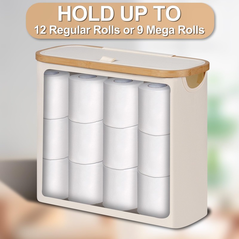 - Bamboo HandleThe toilet paper storage is made of Oxford fabric. The thick Oxford fabric is durable, not easy to damage, light in weight, breathable and easy to clean. It also has a bamboo handle and lid for easy movement and access to rolls.