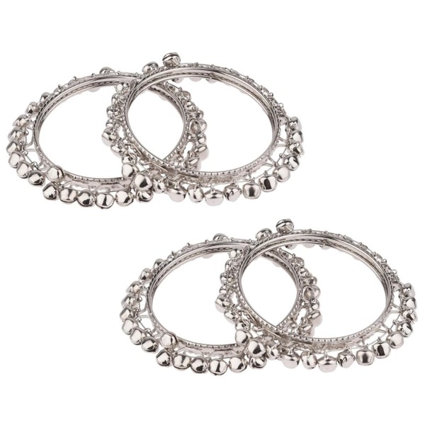 Efulgenz Boho Vintage Antique Gypsy Tribal Indian Oxidized Gold Plated Bell Charm Bracelet Bangle Set Jewelry 2.6 silver